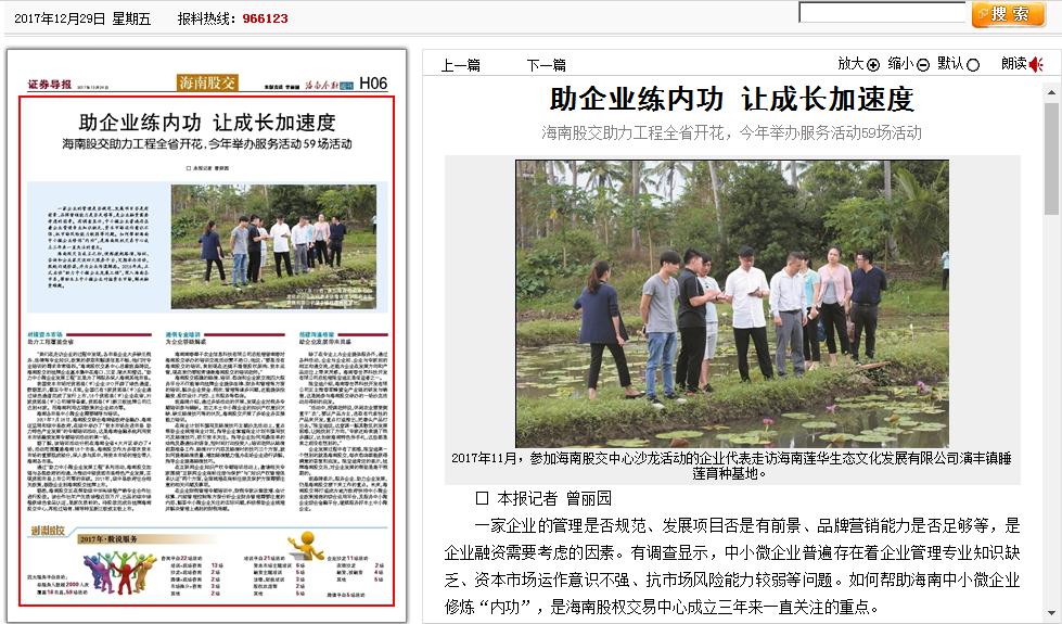 近日,證券導(dǎo)報(bào)以四個(gè)版面整版報(bào)道海南股權(quán)交易中心,關(guān)注股交中心三年以來(lái)的發(fā)展。其中,通過(guò)一個(gè)版面的篇幅,提煉總結(jié)了股交中心的亮點(diǎn)工作及服務(wù)企業(yè)、創(chuàng)新業(yè)務(wù)等方面的突破和股交中心三年以來(lái)取得的成績(jī)。報(bào)道指...