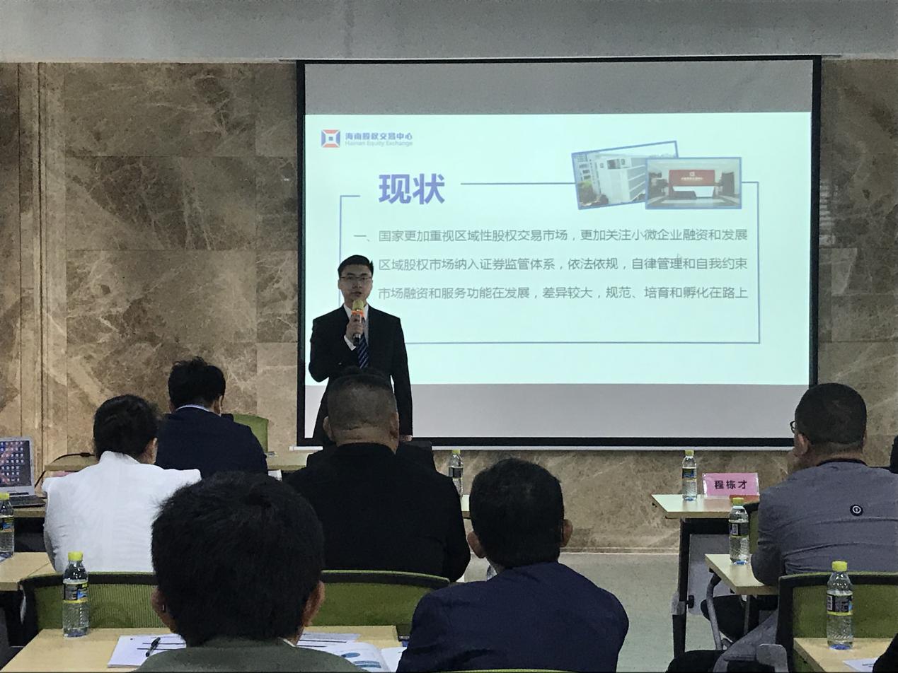12月8日上午,海南股權(quán)交易中心舉辦掛牌企業(yè)舉辦業(yè)務(wù)培訓(xùn)交流會,共有30余家掛牌企業(yè)代表參與。股交中心執(zhí)行總經(jīng)理程棟才為在場的企業(yè)代表介紹了區(qū)域性股權(quán)市場的發(fā)展現(xiàn)狀、股交中心服務(wù)中小微企業(yè)的幾大措施、中心...