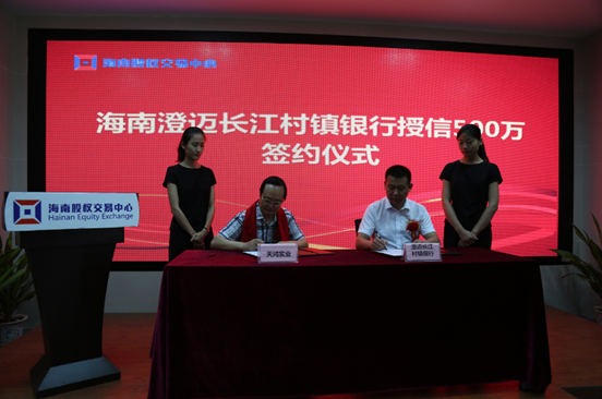現(xiàn)場(chǎng),海南澄邁長(zhǎng)江村鎮(zhèn)銀行與海南天鴻實(shí)業(yè)股份有限公司舉行了授信簽約儀式,天鴻實(shí)業(yè)現(xiàn)場(chǎng)獲得500萬(wàn)元的授信額度。天鴻實(shí)業(yè)董事長(zhǎng)姜和先生表示,掛牌股交中心,是公司對(duì)接資本市場(chǎng)的第一步,接下來(lái)公司將扎實(shí)服務(wù),規(guī)范企業(yè)發(fā)展,對(duì)接投融資機(jī)構(gòu),參與海南國(guó)際旅游島建設(shè),努力將企業(yè)建成海南知名的環(huán)保農(nóng)業(yè)休閑旅游投資開(kāi)發(fā)企業(yè)。