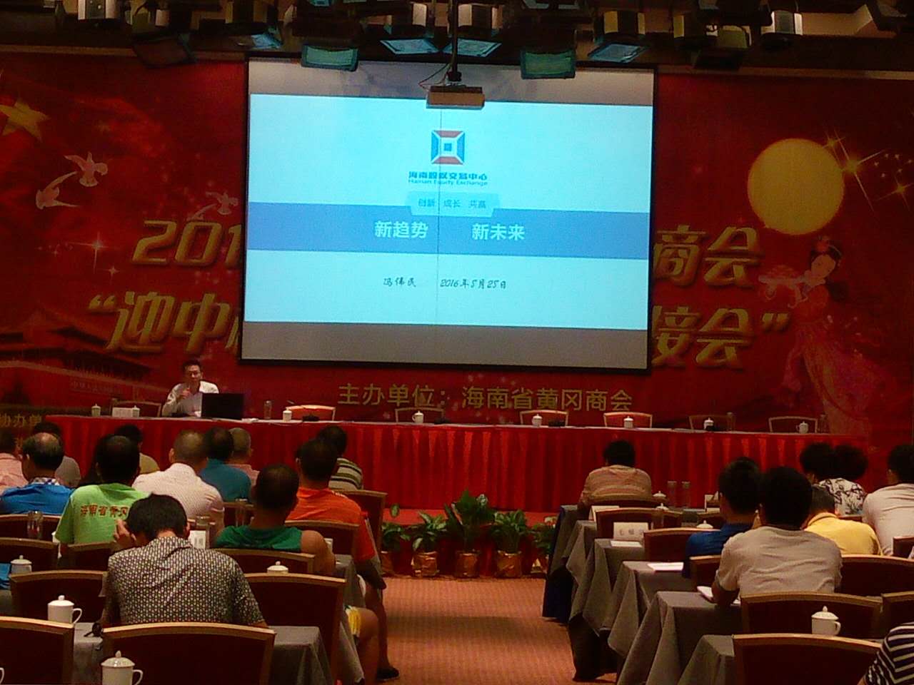 為了幫助海南省湖北黃岡商會(huì)更好地對(duì)接資本市場(chǎng),解決商會(huì)會(huì)員在企業(yè)運(yùn)作過程中存在的中小企業(yè)融資難的實(shí)際問題,切實(shí)幫助中小企業(yè)不斷發(fā)展壯大,海南股權(quán)交易中心聯(lián)合海南省黃岡商會(huì)舉行了本次培訓(xùn),企業(yè)嘉賓共計(jì)100人參加了活動(dòng)。