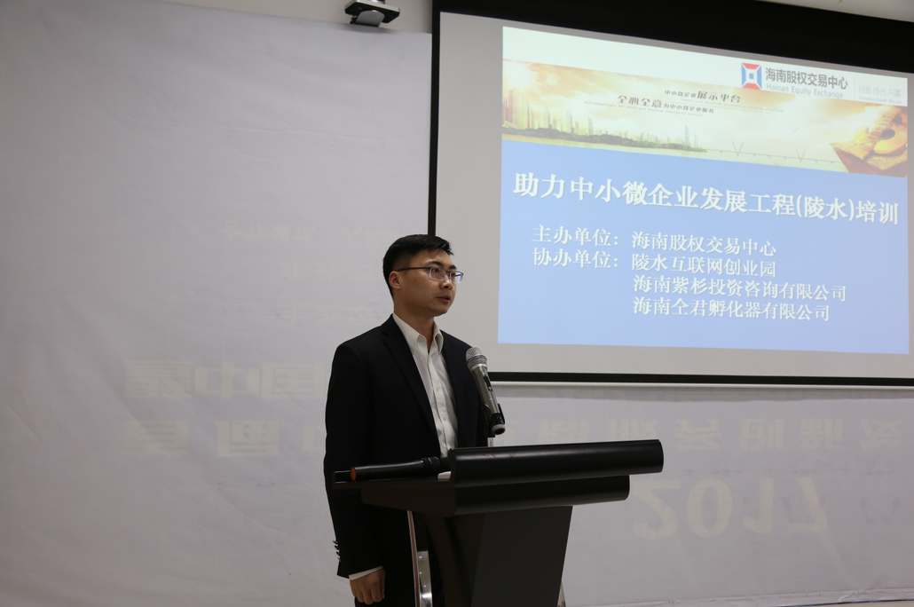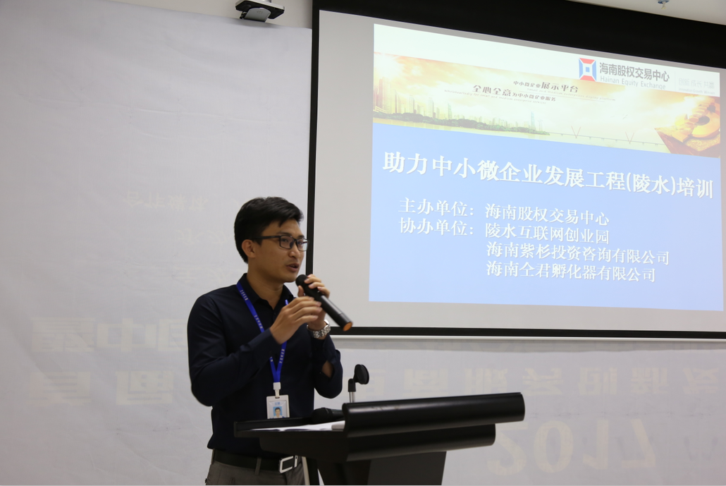 2月20日下午,海南股權(quán)交易中心主辦的“助力中小微企業(yè)發(fā)展工程”系列活動(dòng)——陵水站成功舉辦。本次活動(dòng)在陵水互聯(lián)網(wǎng)創(chuàng)業(yè)園、海南仝君孵化器有限公司、海南紫衫投資咨詢(xún)有限公司共同協(xié)辦下舉行,活動(dòng)旨在通過(guò)“助力中小微企業(yè)發(fā)展工程”使更多的中小微企業(yè)獲得發(fā)展。海南股權(quán)交易中心副總經(jīng)理程棟才,陵水互聯(lián)網(wǎng)創(chuàng)業(yè)園負(fù)責(zé)人、海南仝君孵化器有限公司運(yùn)營(yíng)總監(jiān)陳烈,中國(guó)股權(quán)激勵(lì)研究院海南分院院長(zhǎng)、深圳華一世紀(jì)海南分公司總經(jīng)理李瑞,海南銀行陵水支行、屯昌縣農(nóng)村信用社,以及50家企業(yè)家代表參加此次培訓(xùn)。