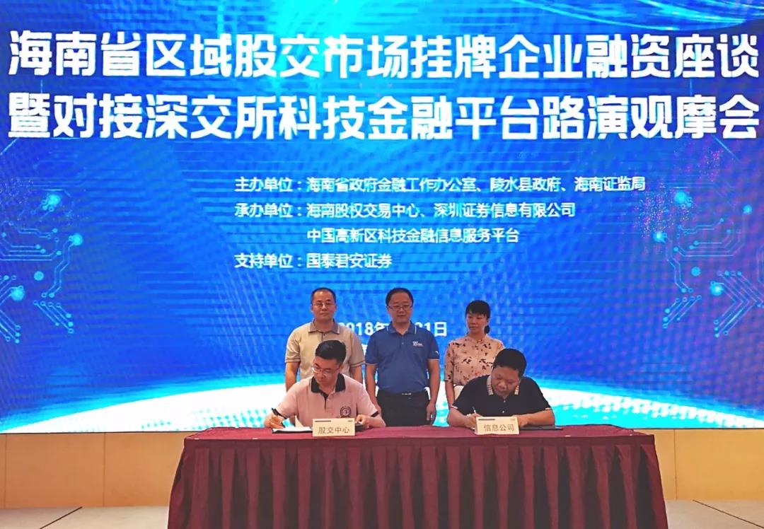 為支持我省區(qū)域性股權(quán)市場(chǎng)發(fā)展,加強(qiáng)海南股權(quán)交易中心掛牌企業(yè)與深圳證券交易所的有效對(duì)接,將省外資本與我省重點(diǎn)產(chǎn)業(yè)掛牌企業(yè)發(fā)展相融合,更大范圍拓寬我省中小企業(yè)融資渠道,更好地服務(wù)海南自由貿(mào)易區(qū)(港)建設(shè),7月31日,海南省政府金融工作辦公室、陵水縣政府和海南證監(jiān)局聯(lián)合在陵水縣舉辦海南省區(qū)域股交市場(chǎng)掛牌企業(yè)融資座談暨深交所科技金融平臺(tái)路演觀摩會(huì)?;顒?dòng)由海南股權(quán)交易中心、深圳證券信息有限公司和中國(guó)高新區(qū)科技金融信息服務(wù)平臺(tái)一同承辦,并獲得國(guó)泰君安證券的大力支持。