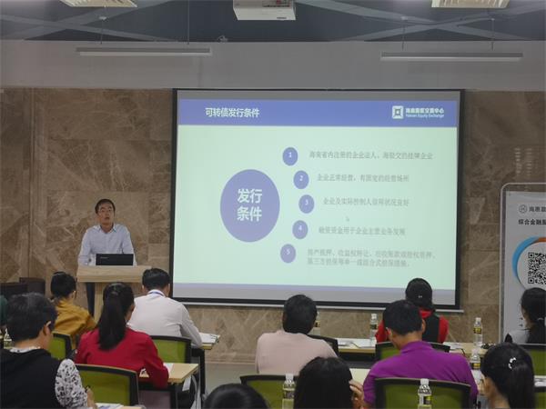 在接下來(lái)的培訓(xùn)環(huán)節(jié)中,海股交相關(guān)部門(mén)工作人員向到場(chǎng)的企業(yè)負(fù)責(zé)人及高管詳細(xì)介紹了海股交的定位與服務(wù)功能、企業(yè)合規(guī)管理要求以及股權(quán)轉(zhuǎn)讓、定向增資、發(fā)行可轉(zhuǎn)債等方面的內(nèi)容。