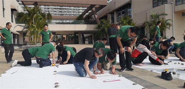 下午還進(jìn)行了“納斯卡巨畫”活動(dòng),大家你一筆,我一畫,不分隊(duì)伍、凝心聚力,每個(gè)人都是最好的畫師,畫出活力,畫出海南股交的精氣神。通過細(xì)致的分工協(xié)作,最終完成了一幅10米×6米的巨幅圖畫,攻克了曾經(jīng)認(rèn)為不可能完成的項(xiàng)目。