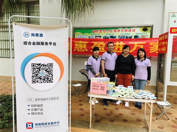 近日,為滿足社區(qū)居民日益增長(zhǎng)的金融服務(wù)需求,不斷拉近海南股交與社區(qū)居民的距離,海南股交投資者服務(wù)中心聯(lián)合?;萦瘓F(tuán)隊(duì)開(kāi)展了“海惠盈進(jìn)萬(wàn)家”戶外營(yíng)銷(xiāo)活動(dòng)。在加深與社區(qū)居民感情交流的同時(shí),推進(jìn)?;萦鐓^(qū)金融服務(wù),將?;萦a(chǎn)品送到市民家門(mén)口,為海南股交后期的產(chǎn)品路演打下良好基礎(chǔ),讓社區(qū)居民感受海南股交貼心的服務(wù)。