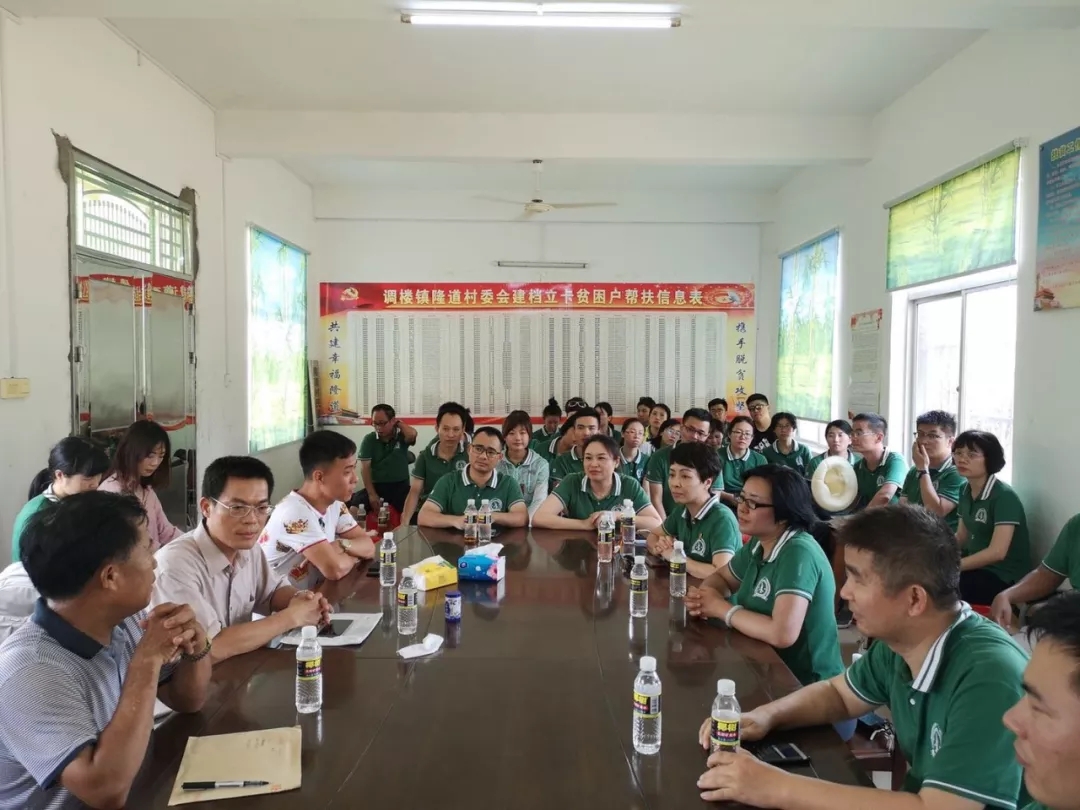中午稍事休息后,全體員工前往隆道村村委會,與隆道村委會黨支部書記曾建師、駐村書記鐘文歐及村民開展座談交流,會上,班淼琦總經(jīng)理向曾書記及村民們介紹了海南股交的基本情況以及近年來開展扶貧工作的情況,希望通過海南股交的平臺功能、掛牌企業(yè)資源等優(yōu)勢,幫助隆道村進一步推進產(chǎn)業(yè)扶貧工作,并圍繞發(fā)掘隆道村特色產(chǎn)品進行統(tǒng)一包裝、打造專屬隆道村的特色農(nóng)業(yè)品牌等主題與曾書記和村民進行了探討。