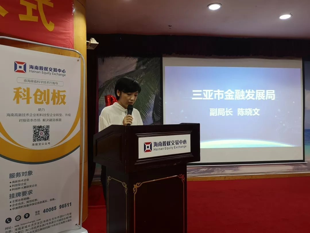 陳曉文在發(fā)言中首先對(duì)企業(yè)成功掛牌表示祝賀,并對(duì)海南股交的大力支持表示感謝。她說(shuō),在多層次資本市場(chǎng)上市掛牌融資,是企業(yè)擴(kuò)大規(guī)模、加快發(fā)展、提高運(yùn)行質(zhì)量和核心競(jìng)爭(zhēng)力的有效手段。一個(gè)地方企業(yè)上市數(shù)量的多少,是這個(gè)地方經(jīng)濟(jì)活躍程度和競(jìng)爭(zhēng)能力強(qiáng)弱的重要標(biāo)志,體現(xiàn)了這個(gè)地方企業(yè)的總體發(fā)展水平。此次集中掛牌不僅是三亞市推動(dòng)企業(yè)對(duì)接資本市場(chǎng)工作的一次集中展示,也是宣傳并提升企業(yè)品牌影響力的重要機(jī)遇。今后,三亞金融發(fā)展局將持續(xù)加大對(duì)企業(yè)上市掛牌工作的支持力度,為發(fā)展多層次資本市場(chǎng)制定相關(guān)政策鼓勵(lì)企業(yè)掛牌上市,進(jìn)一步拓寬企業(yè)融資渠道。同時(shí)他希望企業(yè)要以此次掛牌為契機(jī),利用海南股交在融資、展示、輔導(dǎo)等方面的功能和優(yōu)勢(shì),進(jìn)一步規(guī)范治理結(jié)構(gòu)、建立現(xiàn)代企業(yè)制度、拓寬融資渠道、樹立品牌形象,實(shí)現(xiàn)創(chuàng)新發(fā)展和轉(zhuǎn)型升級(jí)。
