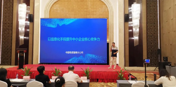 會上,中國電信海南公司、中興通信、海南省通信產(chǎn)業(yè)服務(wù)有限公司、深圳盛陽科技股份有限公司等相關(guān)負(fù)責(zé)人分別就可為中小企業(yè)提供的信息化產(chǎn)品進(jìn)行了分享。現(xiàn)場通過視頻以及產(chǎn)品演示的方式,向參會代表介紹了現(xiàn)階段國家鼓勵中小企業(yè)信息化轉(zhuǎn)型的大方向以及5G時代帶來的現(xiàn)代技術(shù)發(fā)展浪潮。