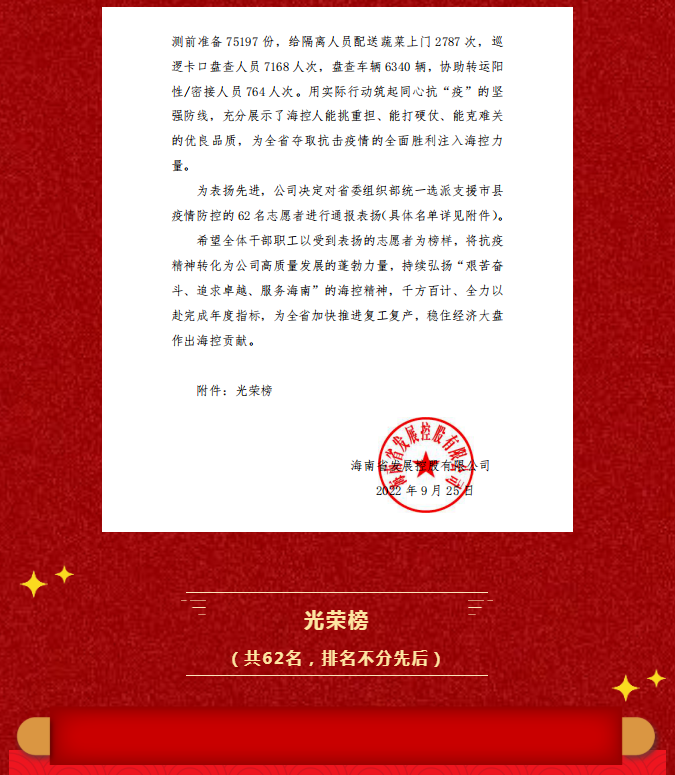 海南控股通報表揚(yáng)62名疫情防控志愿者