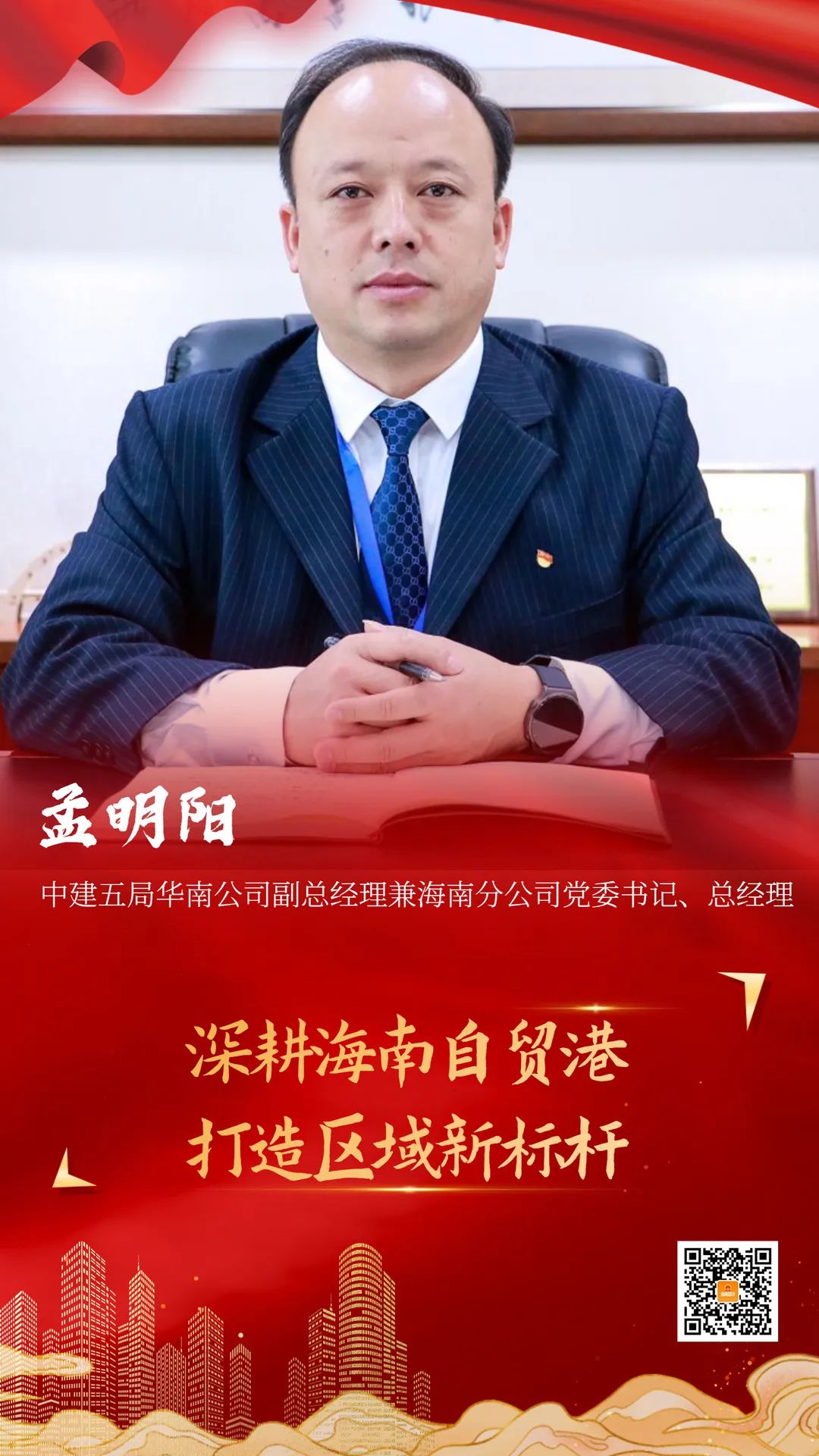 海南省五一勞動獎?wù)芦@得者,中建五局華南公司副總經(jīng)理兼海南分公司黨委書記、總經(jīng)理孟明陽: