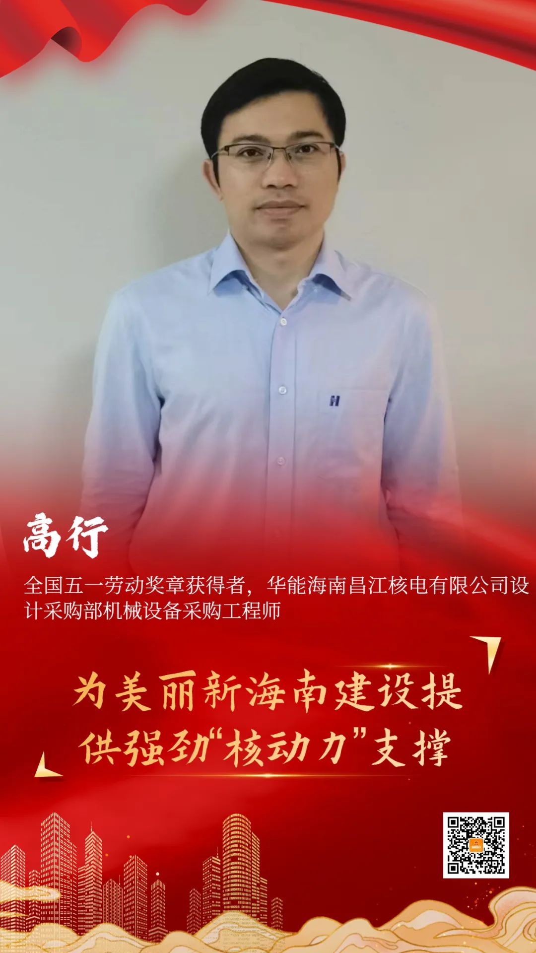 全國五一勞動獎?wù)芦@得者,華能海南昌江核電有限公司設(shè)計采購部機械設(shè)備采購工程師高行: