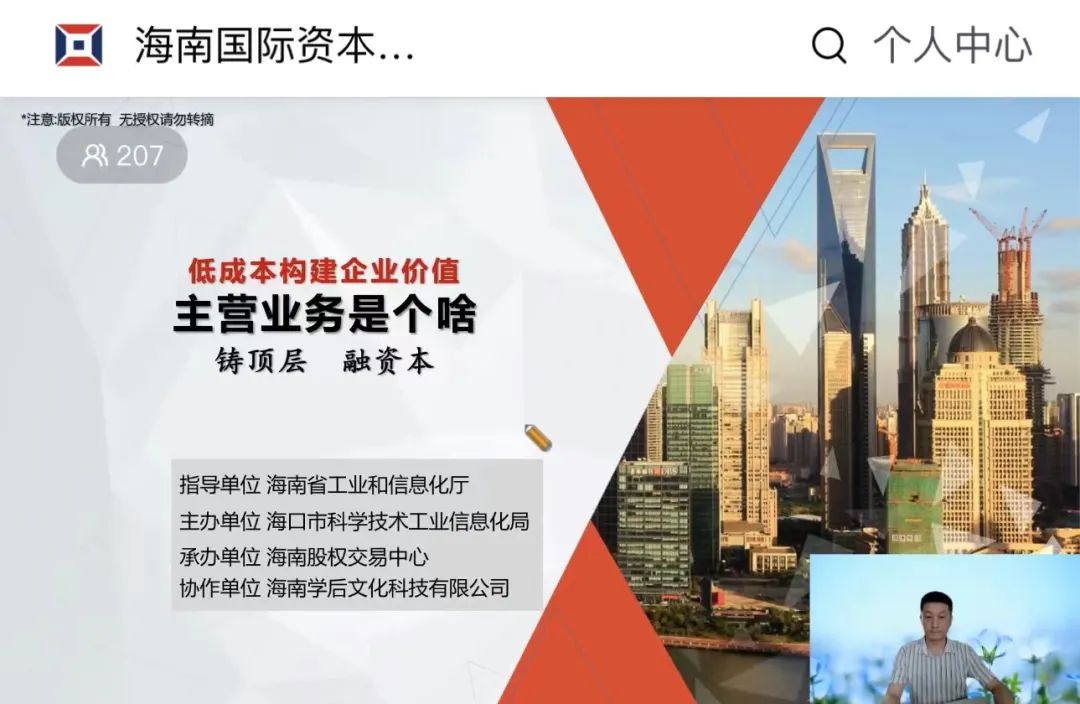 中小企業(yè)是經(jīng)濟(jì)和社會發(fā)展的主力軍,在促進(jìn)增長、保障就業(yè)、活躍市場、改善民生等方面發(fā)揮著重要作用。近年來,海口市委市政府高度重視我市中小企業(yè)的發(fā)展。為營造我市中小企業(yè)發(fā)展良好環(huán)境,加快推動我市中小企業(yè)實(shí)現(xiàn)高質(zhì)量發(fā)展,海南股交緊密結(jié)合??谑锌乒ば啪止ぷ鞑渴?,根據(jù)我市中小企業(yè)發(fā)展需求,從2022年12月起連續(xù)開展多場次的企業(yè)發(fā)展系列培訓(xùn)活動。
