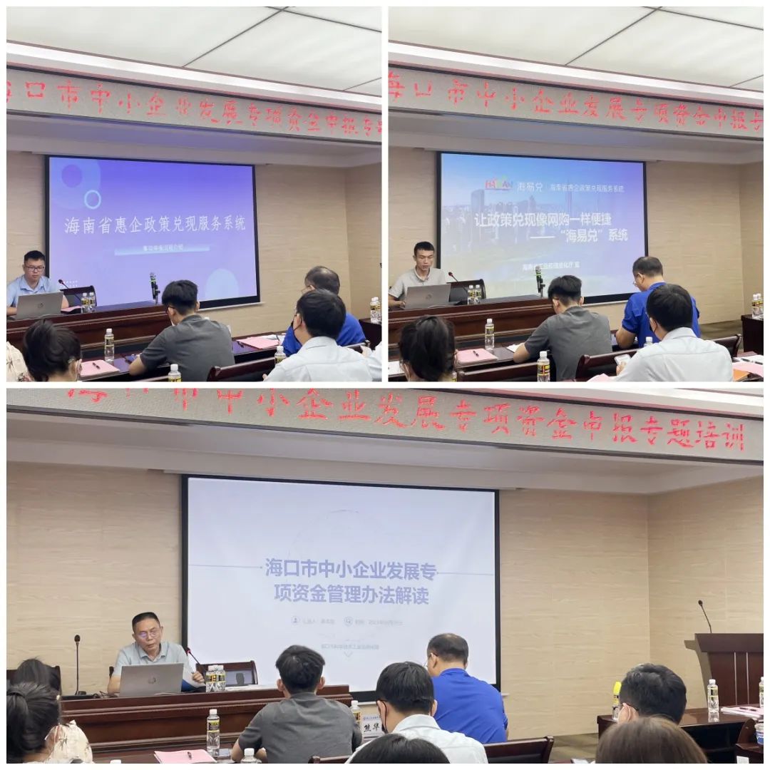 會(huì)上,??谑锌乒ば啪旨笆姓?wù)局政策梳理團(tuán)隊(duì)分別解讀了《??谑兄行∑髽I(yè)發(fā)展專(zhuān)項(xiàng)資金管理辦法》《??谑兄行∑髽I(yè)發(fā)展專(zhuān)項(xiàng)資金線上申報(bào)操作手冊(cè)》,并由海南飛行者科技有限公司現(xiàn)場(chǎng)演示了線上申報(bào)2023年海口市中小企業(yè)發(fā)展專(zhuān)項(xiàng)資金“精特新中小企業(yè)獎(jiǎng)勵(lì)”。隨后,數(shù)字海南有限公司向參會(huì)企業(yè)講解了“海易兌”平臺(tái)系統(tǒng)架構(gòu)、操作流程等方面內(nèi)容。