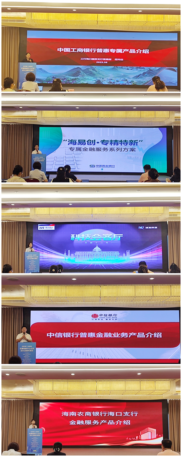 本次活動(dòng)由海南省工業(yè)和信息化廳主辦,海南股權(quán)交易中心承辦,中國(guó)工商銀行海南省分行、中國(guó)民生銀行??诜中小⑸虾F謻|發(fā)展銀行??诜中小⒅行陪y行??诜中小⒑D限r(nóng)商銀行??谥袇f(xié)辦?;顒?dòng)吸引了海南省內(nèi)“專精特新”中小企業(yè)、創(chuàng)新型中小企業(yè)等企業(yè)代表參與。