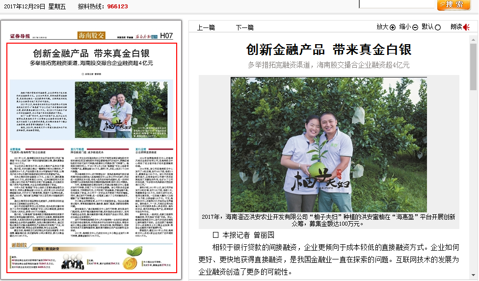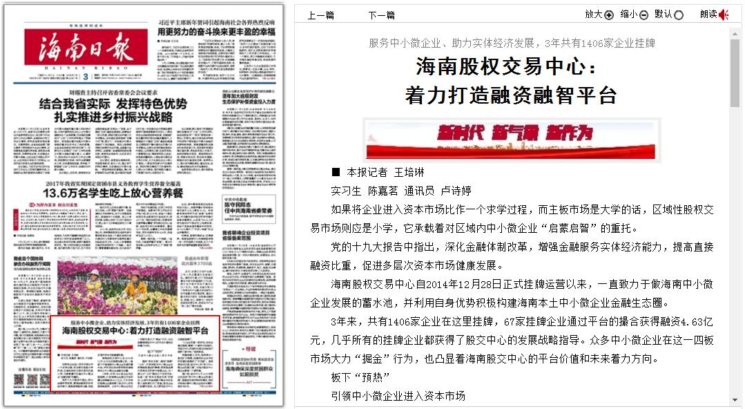 在海南股權(quán)交易中心成立三周年之際,證券導(dǎo)報(bào)以四個(gè)版面整版報(bào)道海南股權(quán)交易中心,關(guān)注股交中心三年以來(lái)的發(fā)展。其中,通過(guò)一個(gè)版面的報(bào)道——《創(chuàng)新金融產(chǎn)品帶來(lái)真金白銀》,解讀了股交中心幫助企業(yè)實(shí)現(xiàn)融資的各項(xiàng)...