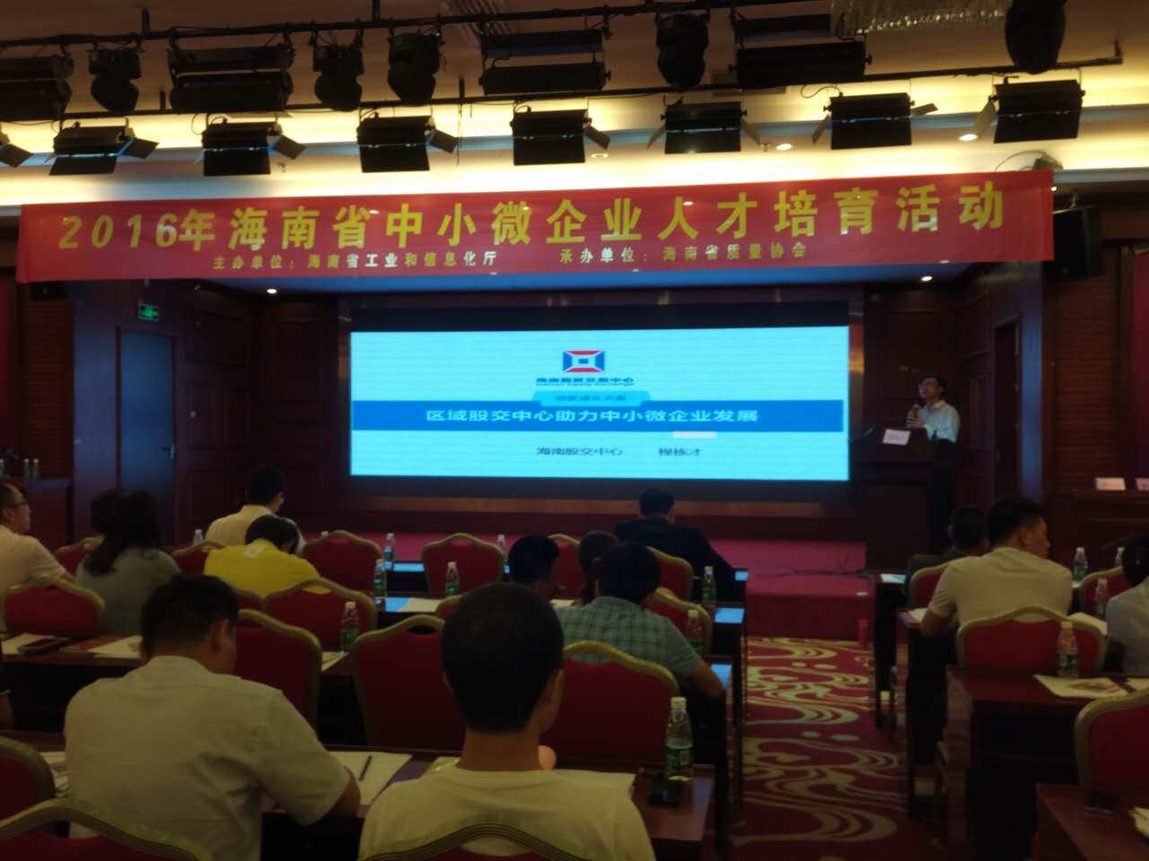 7月19日下午,由海南省工信廳主辦,海南省質(zhì)量協(xié)會(huì)承辦,海南股權(quán)交易中心和深圳華一世紀(jì)企業(yè)管理顧問有限公司海南分公司共同支持的2016年海南省中小微企業(yè)人才培育活動(dòng)第十六期暨企業(yè)資本市場融資股權(quán)管理培訓(xùn)班,在??谑邢憬瓏H溫泉大酒店國際廳舉辦。海南省中小企業(yè)局局長王民出席活動(dòng)。