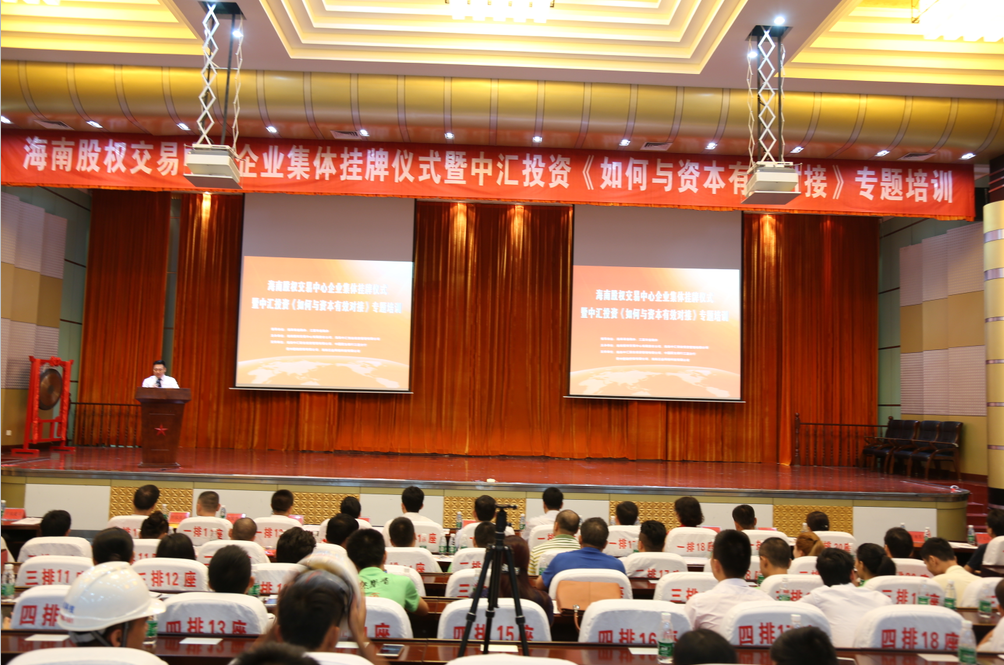 8月12日上午,在海南省和三亞市金融辦共同指導(dǎo)下,海南股權(quán)交易中心聯(lián)合海南中匯創(chuàng)業(yè)投資管理有限公司,在三亞市委黨校舉辦企業(yè)集體掛牌儀式暨“如何與資本有效對(duì)接”專(zhuān)題培訓(xùn)活動(dòng)。