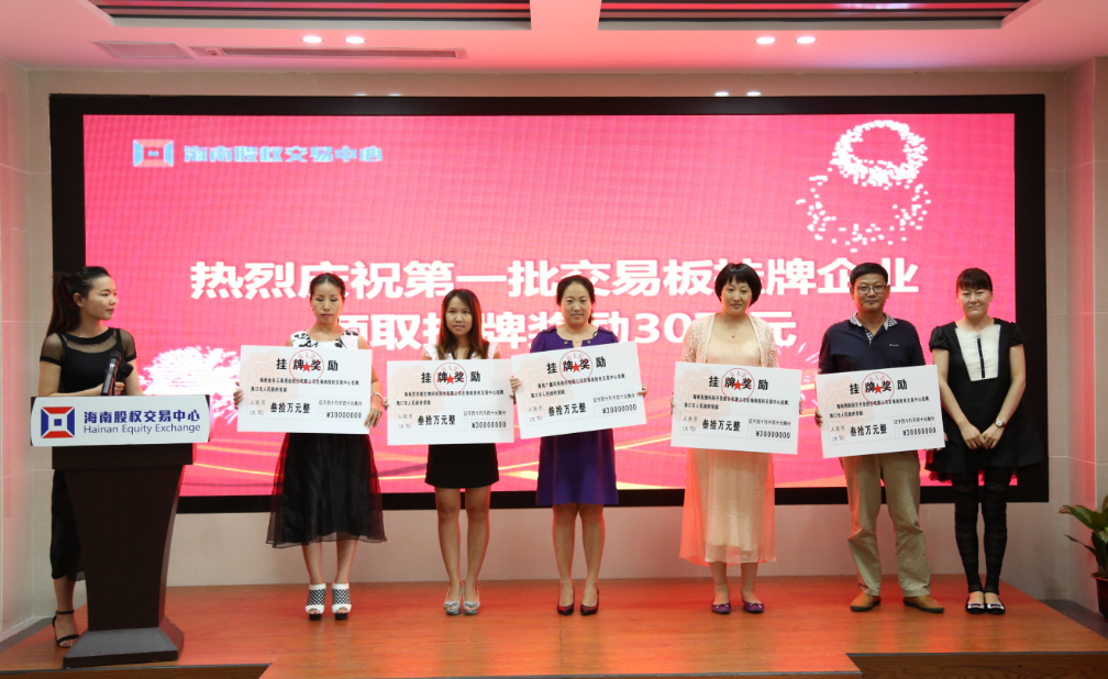 交易板掛牌企業(yè)代表海南迅達智能科技股份有限公司總經(jīng)理張寶表示,對中小微企業(yè)來說,進軍資本市場的股改稅負成本是一筆不小的支出,海口市政府急大家之所急,及時出臺了財政獎勵和補貼政策,今天三十萬補貼的發(fā)放,對掛牌企業(yè)而言是久旱逢甘露。在接下來的日子里,大家一定會規(guī)范企業(yè)經(jīng)營,快速做大做強,同時,大家也希望借助海南股權(quán)交易中心的平臺,加快對接投資機構(gòu)和金融機構(gòu)。當(dāng)場,??谑胸斦趾徒鹑谵k,分別給首批十家在海南股權(quán)交易中心交易板掛牌的企業(yè)頒發(fā)了30萬元財政獎勵。