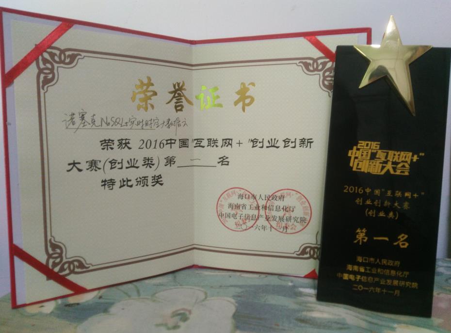 11月26日,2016中國“互聯(lián)網(wǎng)+”創(chuàng)業(yè)創(chuàng)新大賽總決賽在??诼淠?,經(jīng)過激烈角逐,最終海南股權(quán)交易中心掛牌企業(yè)??谥Z塞克西海數(shù)據(jù)科技有限公司開發(fā)的諾塞克NoSQLt實(shí)時(shí)時(shí)空大數(shù)據(jù)云奪得創(chuàng)業(yè)組決賽冠軍。
