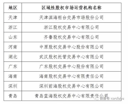 根據(jù)《國務(wù)院辦公廳關(guān)于規(guī)范發(fā)展區(qū)域性股權(quán)市場的通知》(國辦發(fā)〔2017〕11號)、《區(qū)域性股權(quán)市場監(jiān)督管理試行辦法》(證監(jiān)會令第132號)有關(guān)規(guī)定,區(qū)域性股權(quán)市場運營機構(gòu)名單由省級人民政府實施管理并予以公告,同時向證監(jiān)會備案。自2018年4月27日公示《全國區(qū)域性股權(quán)市場運營機構(gòu)備案名單(第一批)》以來,9個地區(qū)按規(guī)定要求向我會備案區(qū)域性股權(quán)市場運營機構(gòu)情況。具體名單如下: