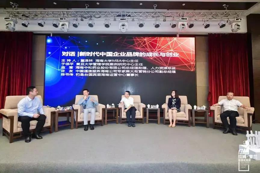 論壇上,在海南大學管理學院MBA中心主任童澤林的主持下,復旦大學管理學院案例研究中心主任于保平,海南中和藥業(yè)股份有限公司總經(jīng)理助理、人力資源總監(jiān)曲瑩,釣魚臺國賓酒海南運營中心董事長陳書傳,中國通信服務海南公司專家兼大有營銷分公司副總經(jīng)理許友圍繞“新時代中國企業(yè)品牌的成長與創(chuàng)業(yè)”展開討論,共同為海南的發(fā)展貢獻智慧。
