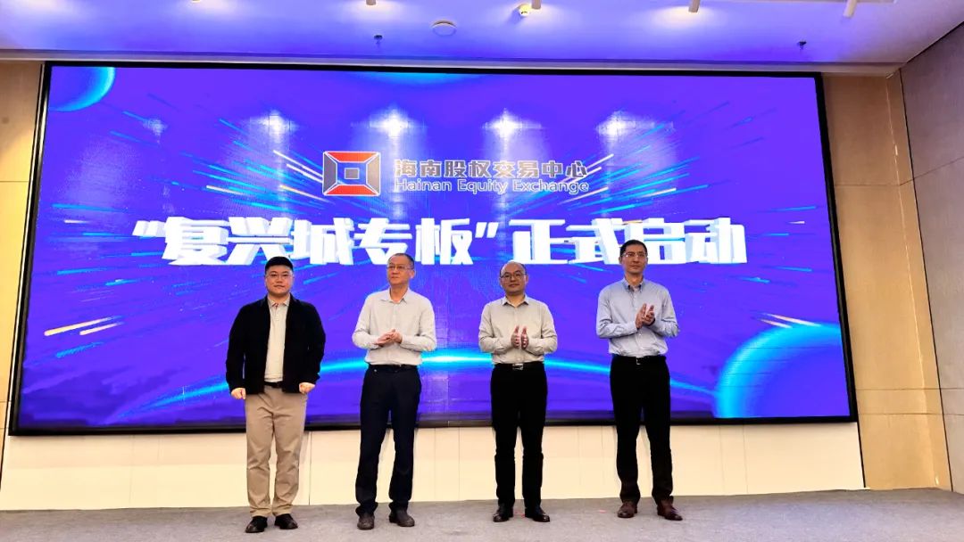 隨著鄧銳、羅洋、吳杰、周博共同按下啟動鍵,海南股交“復(fù)興城專板”正式啟動。隨后,來自互聯(lián)網(wǎng)、綠色能源、電子商務(wù)、教育等領(lǐng)域的20家復(fù)興城入駐企業(yè)集體上臺鳴鑼,集中登陸海南股交“復(fù)興城專板”。