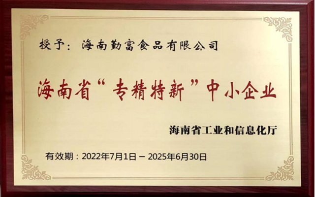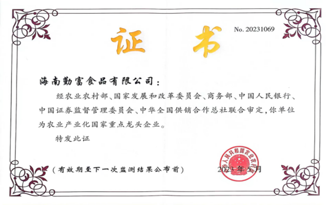 海南勤富食品股份有限公司2018年獲得海南省科技產(chǎn)業(yè)十大影響力領(lǐng)軍企業(yè);連續(xù)獲得海南省第七屆、第八屆、第九屆優(yōu)秀企業(yè);連續(xù)獲得海南省第五屆、第六屆、第七屆杰出民營(yíng)企業(yè);2019年獲得文昌市脫貧攻堅(jiān)工作先進(jìn)單位。