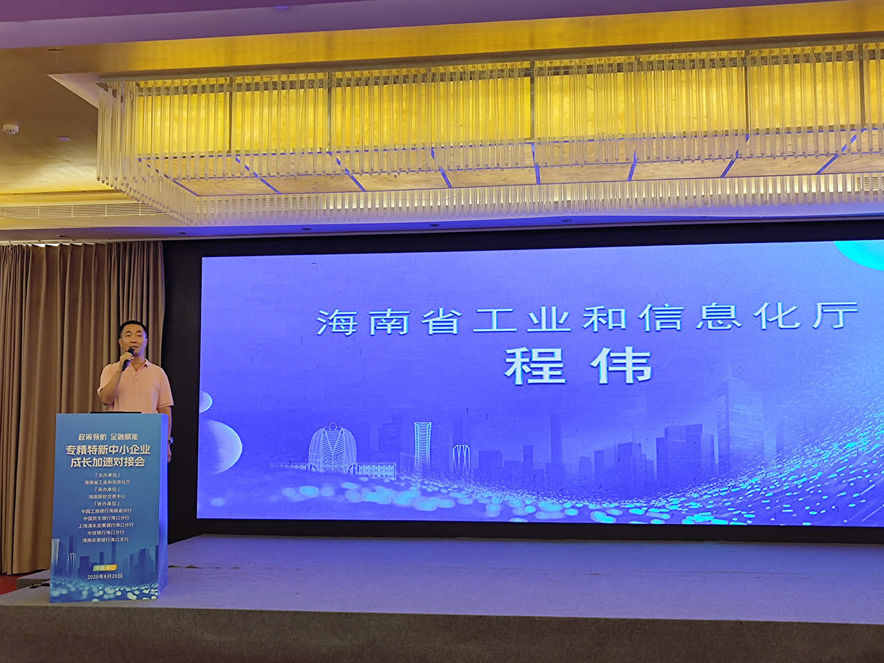 本次活動(dòng)由海南省工業(yè)和信息化廳主辦,海南股權(quán)交易中心承辦,中國(guó)工商銀行海南省分行、中國(guó)民生銀行??诜中小⑸虾F謻|發(fā)展銀行??诜中小⒅行陪y行??诜中小⒑D限r(nóng)商銀行??谥袇f(xié)辦?;顒?dòng)吸引了海南省內(nèi)“專精特新”中小企業(yè)、創(chuàng)新型中小企業(yè)等企業(yè)代表參與。
