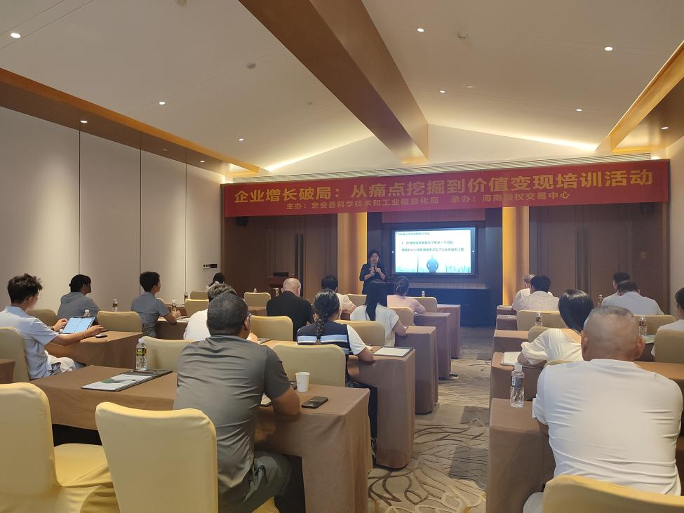為助力本地中小企業(yè)應(yīng)對(duì)市場(chǎng)挑戰(zhàn),突破增長瓶頸,10月14日,由定安縣科學(xué)技術(shù)和工業(yè)信息化局主辦、海南股權(quán)交易中心承辦的“企業(yè)增長破局:從痛點(diǎn)挖掘到價(jià)值變現(xiàn)”專題培訓(xùn)活動(dòng),在定安成功舉辦。本次活動(dòng)吸引了定安縣眾多中小企業(yè)負(fù)責(zé)人及管理者參與。